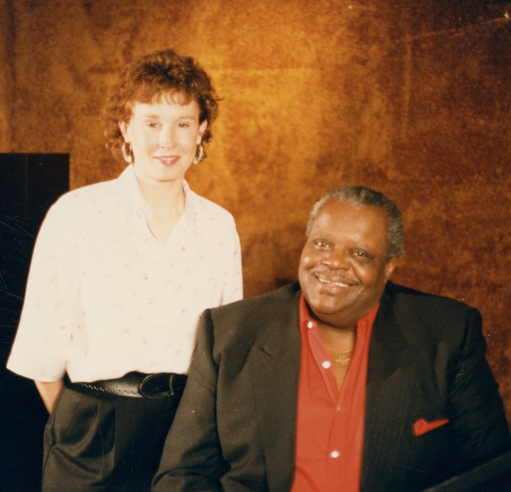 Pianiste Oscar Peterson et Paula Salvador chez Oscar pour le tournage de ELECTRONIC JAM, documentaire de musique.